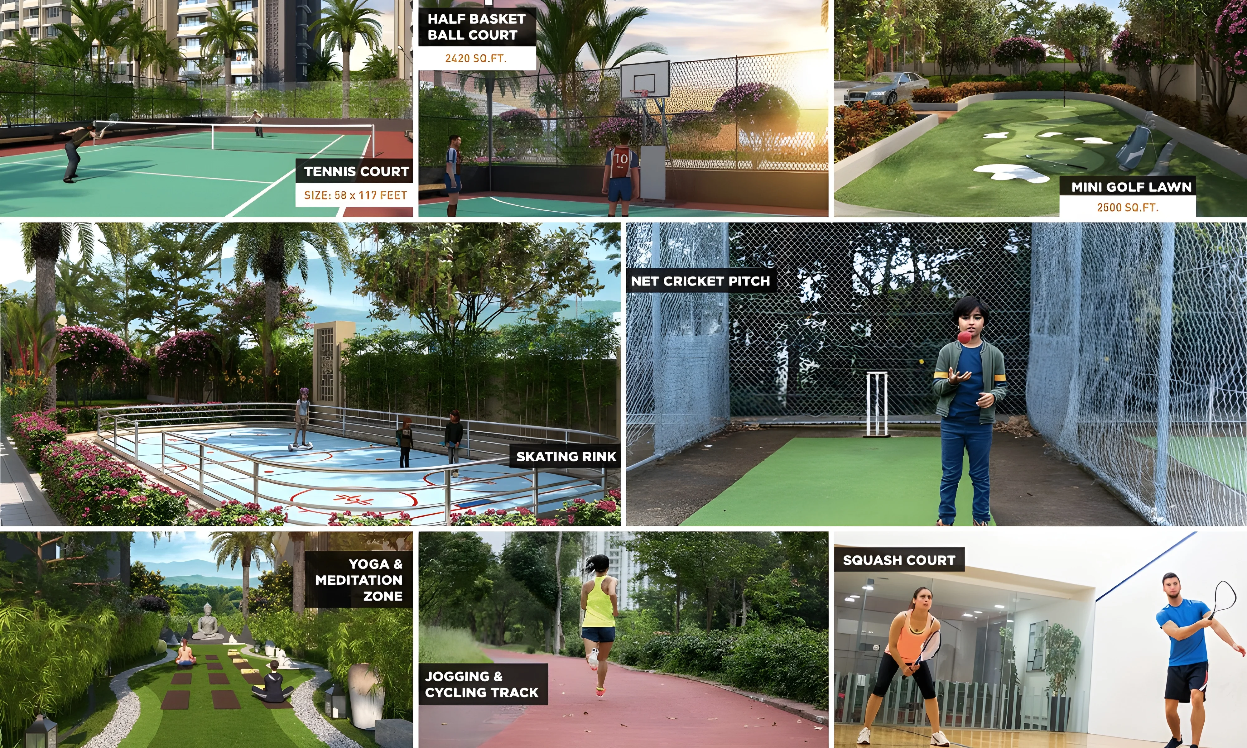 VTP Earth One is an opulent residential landmark in the prime locale of Mahalunge, Baner NX in Pune. Nestled amidst the scenic Mahalunge hills and along the serene Mula River, VTP Earth One offers exquisite 2, 3, and 4 BHK homes within a magnificent 35-storey tower. The project features multi-level vehicle parking, a grand entrance gate with a security cabin, and access-controlled, stylish entrance lobbies for every tower, along with 100% DG backup for lifts and common areas. Buy a premium 2 BHK in Pune, or a spacious 3 BHK, 4 BHK layout with Earth One’s Finest Guarantee. An ideal choice for sports and leisure enthusiasts, residents can indulge in a luxurious swimming pool (11m x 5m), a sophisticated tennis court, a state-of-the-art gym, and a rejuvenating sauna.